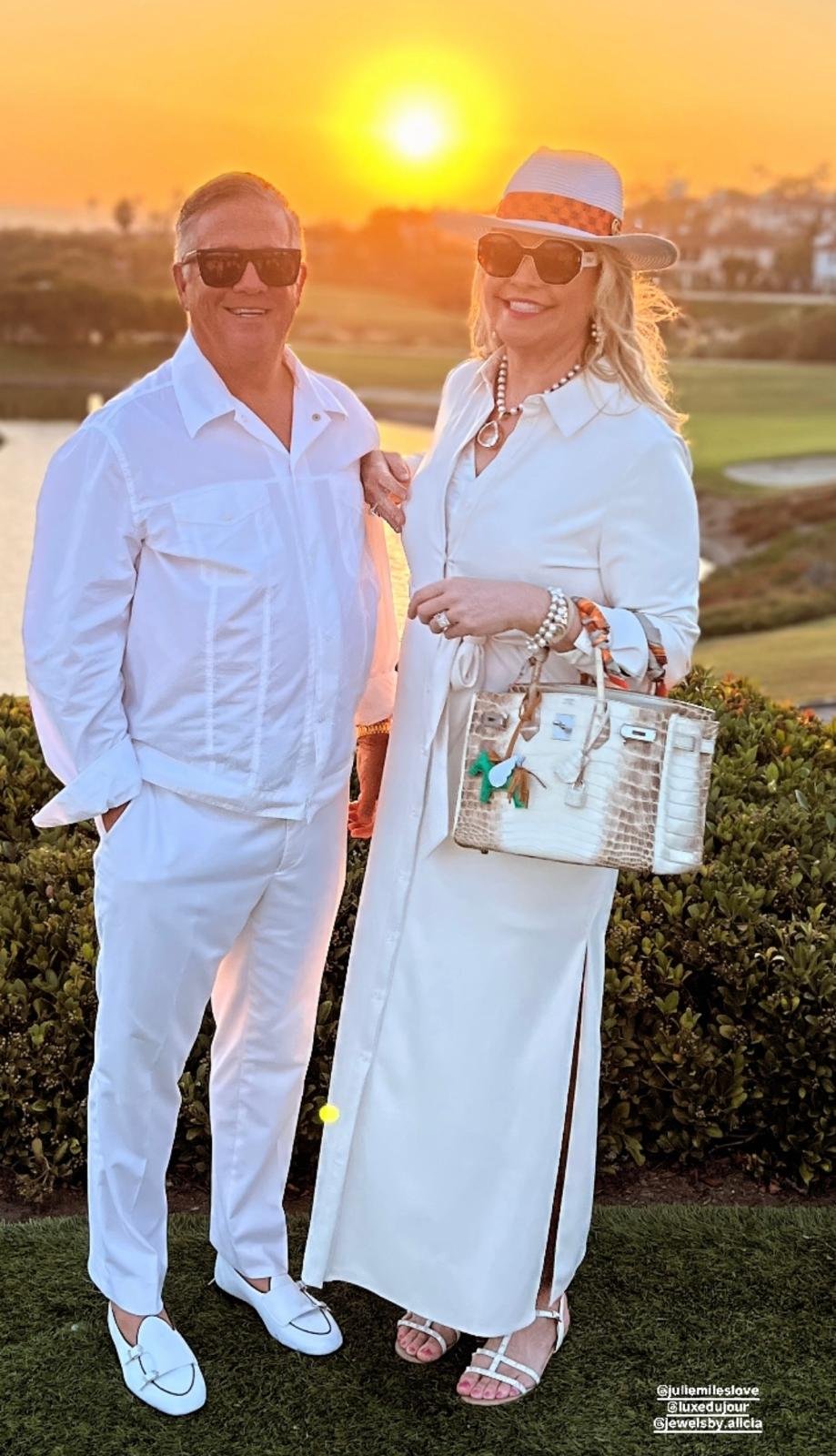 One night it might be head-to-toe Brunello Cucinelli (the king of quiet luxury), and the next it’s a floral explosion from Dolce & Gabbana, loud and proud.